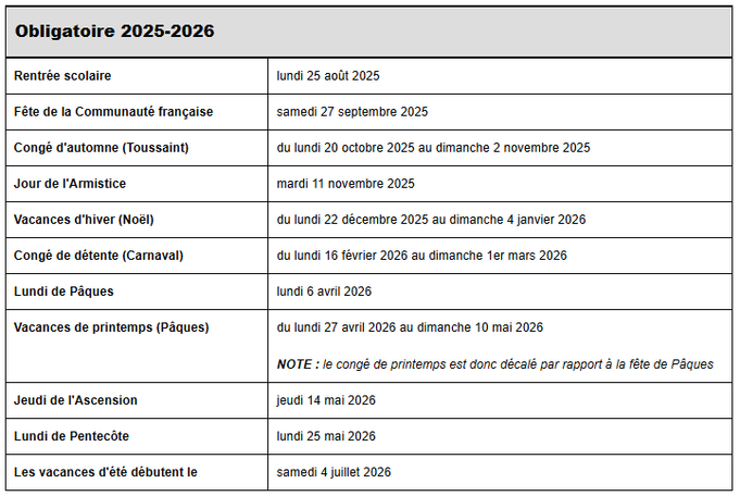 Du lundi 20 octobre 2025 au dimanche 2 novembre 2025 | Congé d'automne (Toussaint) |